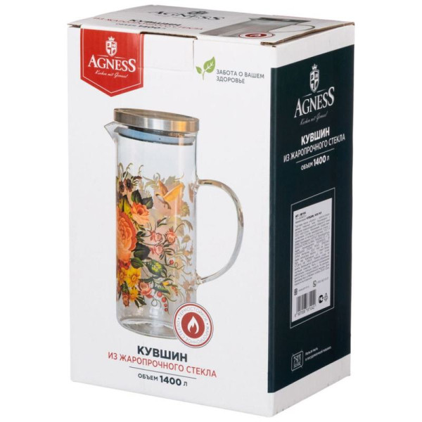 КУВШИН AGNESS МОНБЛАН 1400 МЛ ЖАРОПРОЧНОЕ БОРОСИЛИКАТНОЕ СТЕКЛО