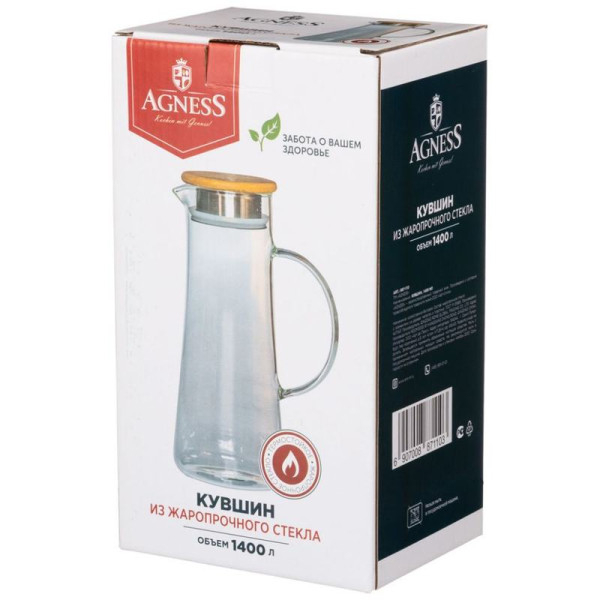 КУВШИН AGNESS NATIVE 1400 МЛ ЖАРОПРОЧНОЕ БОРОСИЛИКАТНОЕ СТЕКЛО