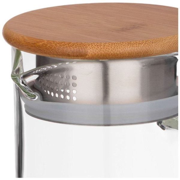 Кувшин оснащен удобной ручкой и плотно закрывающейся бамбуковой крышкой.
