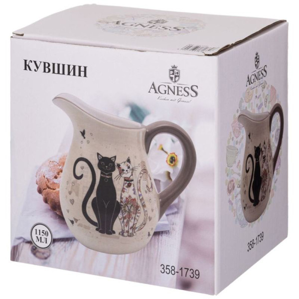 КУВШИН ПАРИЖСКИЕ КОТЫ 18*13 СМ. ВЫСОТА=16,5 СМ. / 1150 МЛ.