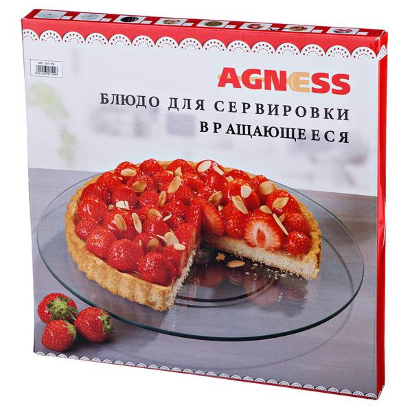 Вращающаяся тортовница AGNESS выполнена из качественного закаленного стекла, обладает непористой поверхностью и не впитывает запахи. Легко и быстро моется теплой водой.