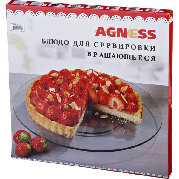 Вращающаяся тортовница AGNESS выполнена из качественного закаленного стекла, обладает непористой поверхностью и не впитывает запахи. Легко и быстро моется теплой водой.